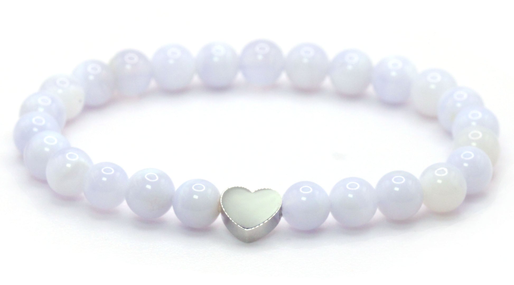 Blauer Spitzenachat Edelstein Armband mit Edelstahlherz