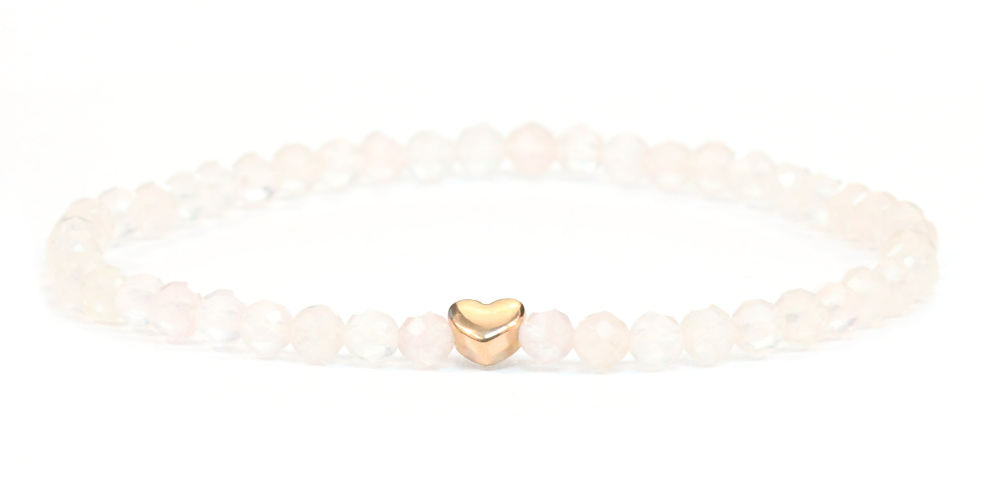 Rosenquarz Edelstein Armband 4mm mit Herz